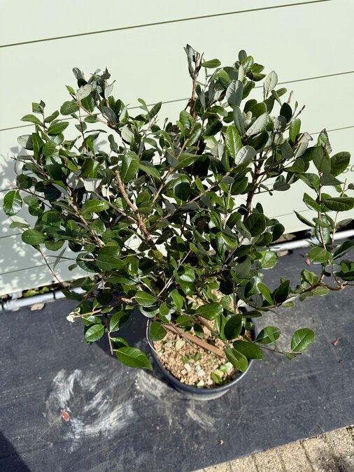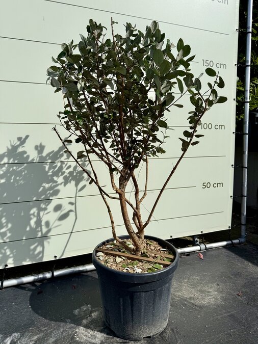 Deze bijzondere Feijoa Acca sellowiana, ook bekend als Ananas Guave is een groenblijvende meerstammige plant van ca. 175 cm waar mooie witte bloemen uitkomen.