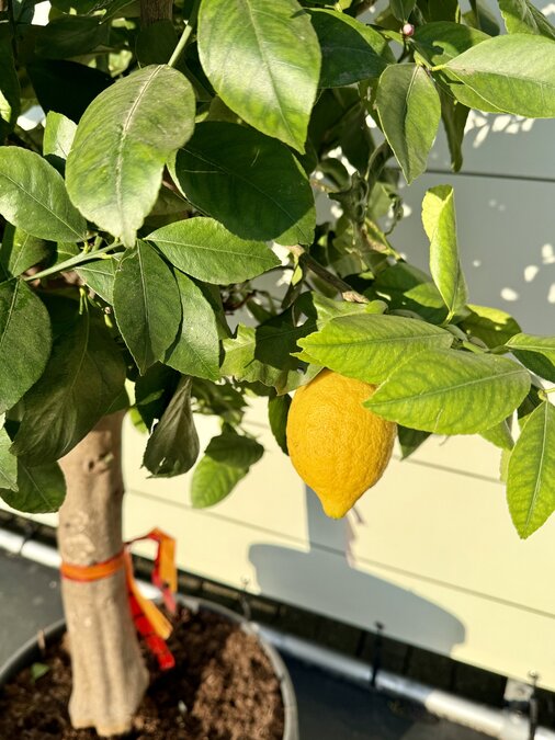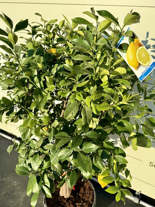 Altijd al een exotische fruitboom in je tuin willen hebben? Tegenwoordig kunnen bijna alle citrusbomen zonder problemen in je tuin en woonkamer geplaatst worden. Deze citroenboom staat bekend om zijn heerlijke geur en uiteraard de grote gele citroenen die er aan komen. Uiteraard zijn de citroenen eetbaar en zijn ze heerlijk van smaak! Winterhard De citrusbomen zijn exotische fruitbomen en houden van warmte. De citrusboom kan geen vorst verdragen en moet daarom in het najaar naar binnen verplaatst worden. Standplaats Citrusboom De citrusboom heeft veel behoefte aan zon en licht. De beste standplaats voor een citrusboom is dan ook in de volle zon. De citrusboom moet wel genoeg water krijgen; het is daarom belangrijk dat de grond altijd licht vochtig is zodat de citrus niet uitdroogt. De citrusboom heeft naarmate de vruchten groeien ook meer behoefte aan water. In het najaar moet de citrusboom naar binnen gezet worden en kan in het voorjaar weer naar buiten. Onderhoud Citrusboom Een citrusboom heeft weinig onderhoud nodig om hem goed te laten groeien. Water en voeding zijn de belangrijkste aandachtspunten. Waterbehoefte Een citrusboom heeft een redelijke waterbehoefte en het is erg belangrijk dat de boom niet uitdroogt. Een teken van te weinig water is dat het blad begint te krullen en dat de vruchten afvallen. Door regelmatig je vinger in de aarde te steken krijg je een goed beeld of de citrus nog vochtig genoeg is en niet te droog staat. Snoeien De citrusboom moet in het najaar gesnoeid worden als de vruchten rijp zijn. Het snoeien van de citrusboom heeft twee grote voordelen. Ten eerste blijft de citrusboom op een mooie hoogte en blijft die goed in vorm. Ten tweede is het ook erg goed voor de citrus. Door het snoeien van de takken hoeft de boom minder energie te verspreiden en verbeterd het de vitaliteit van de boom. Het snoeien van de boom doe je door de takken voor maximaal 30% terug te snoeien. Eventuele dode takken kunnen er volledig uitgeknipt worden. Voeding Extra voeding bevordert de groei van de citrusboom en de vruchten. De citrusboom heeft alleen voeding nodig van maart t/m oktober. Wij adviseren om deze voeding te gebruiken. Kwaliteitsgarantie Tropictrees selecteert zijn planten zelf bij de kweker. Kwaliteit en leveringsbetrouwbaarheid staan bij ons centraal. Het blijft een natuurproduct waardoor het altijd iets kan afwijken van de foto’s. Wij zijn geregistreerd bij NAK Tuinbouw onder nr. 91500
