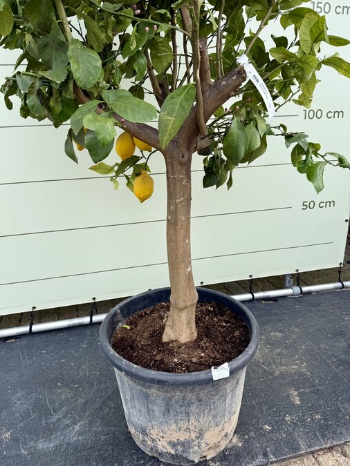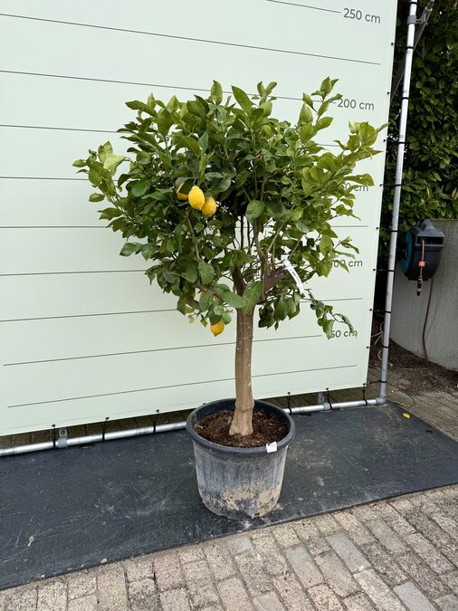 Deze Citroenboom ook wel bekend als de Citrus Limon heeft een stamomvang van 18-20 cm en een totale hoogte van ca. 200-250 cm inclusief pot.