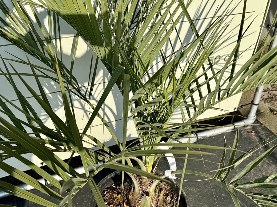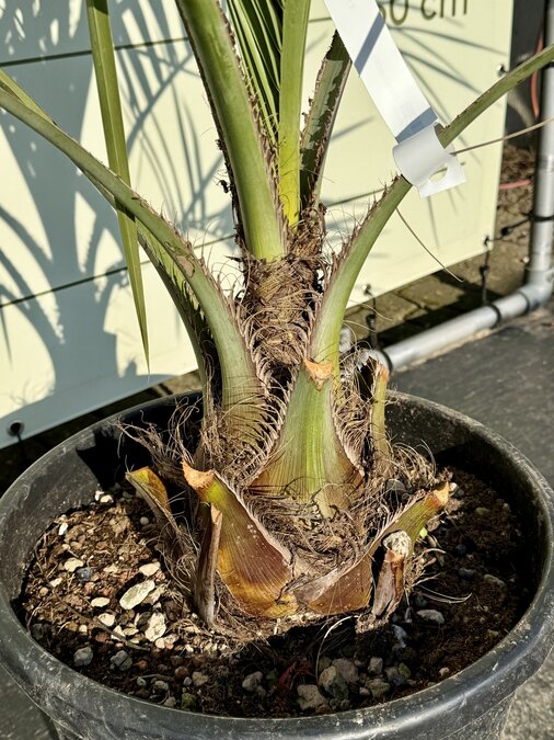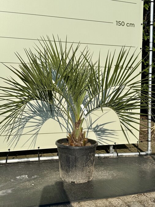 Deze Geleipalm heeft een stamhoogte van 15-20 cm en heeft bij levering een totale hoogte van 110 cm inclusief pot.